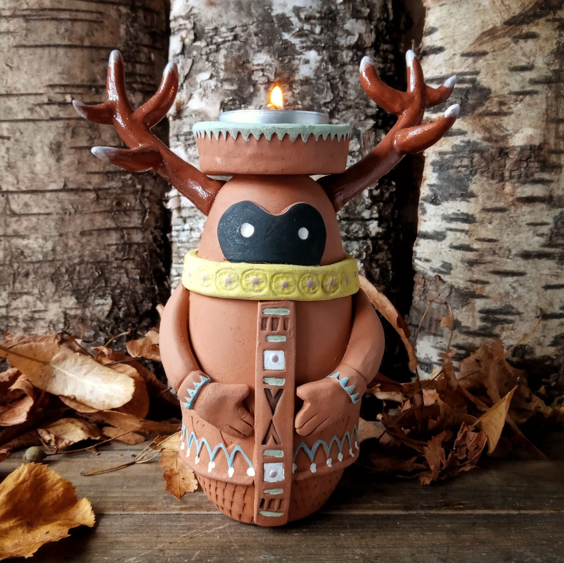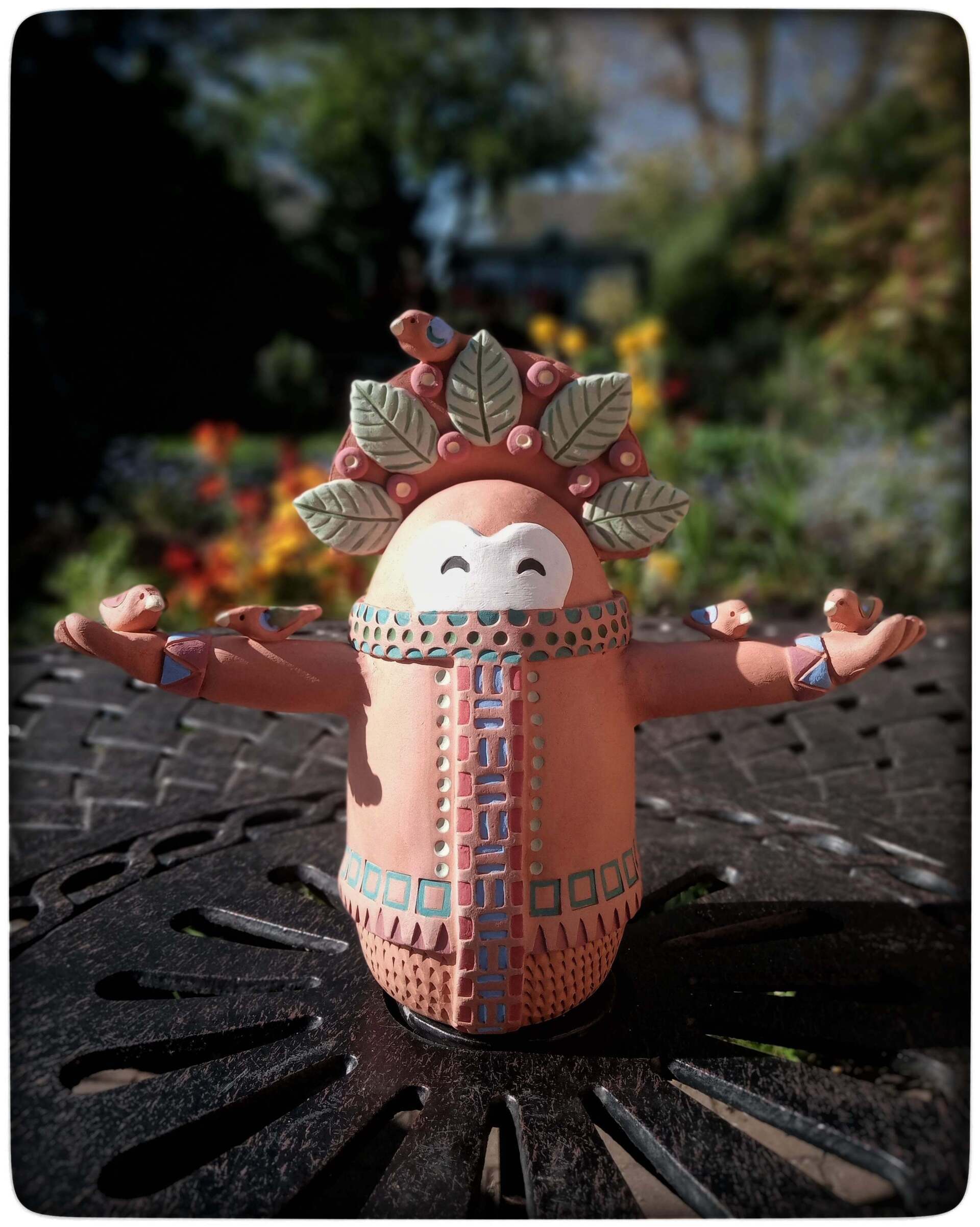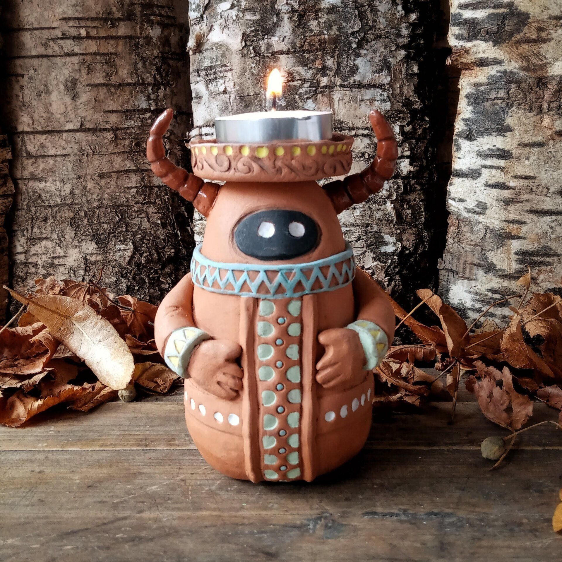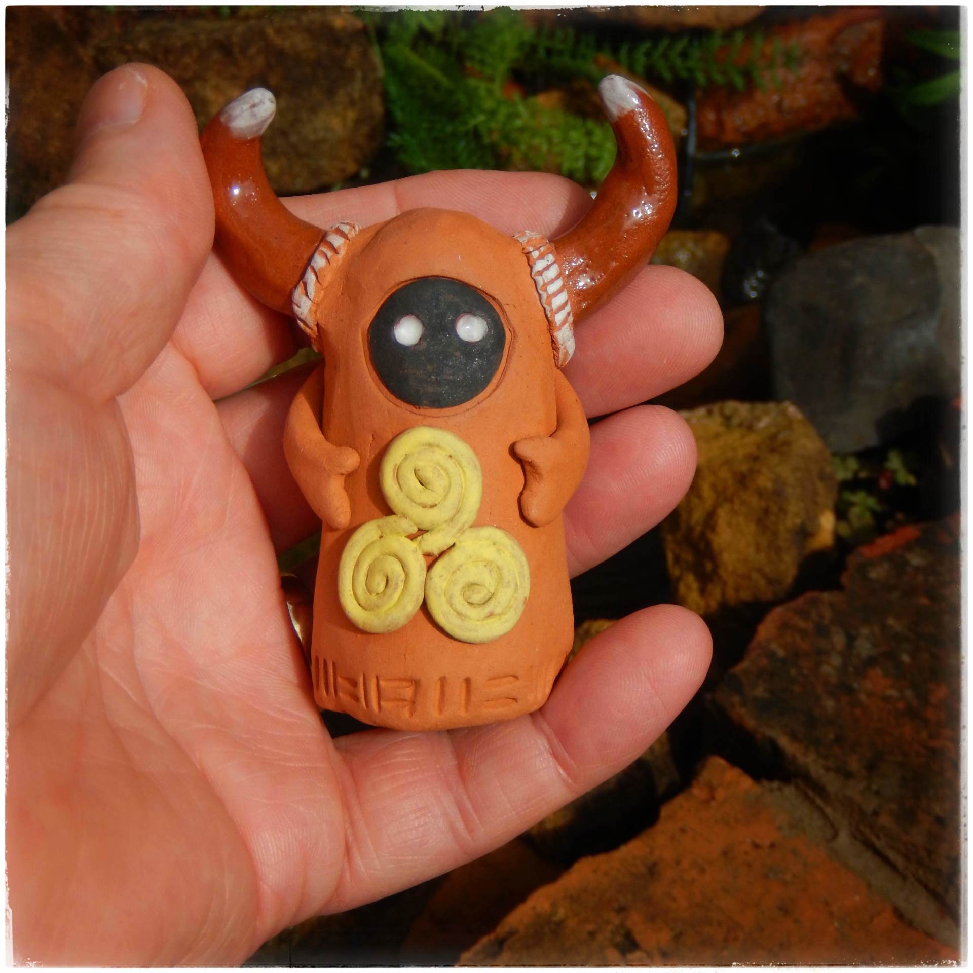 comes alive through our handcrafted terracotta spirit guardians. Each guardian is meticulously sculpted in my Nottingham garden studio, infused with intention, and adorned with the protective Algiz