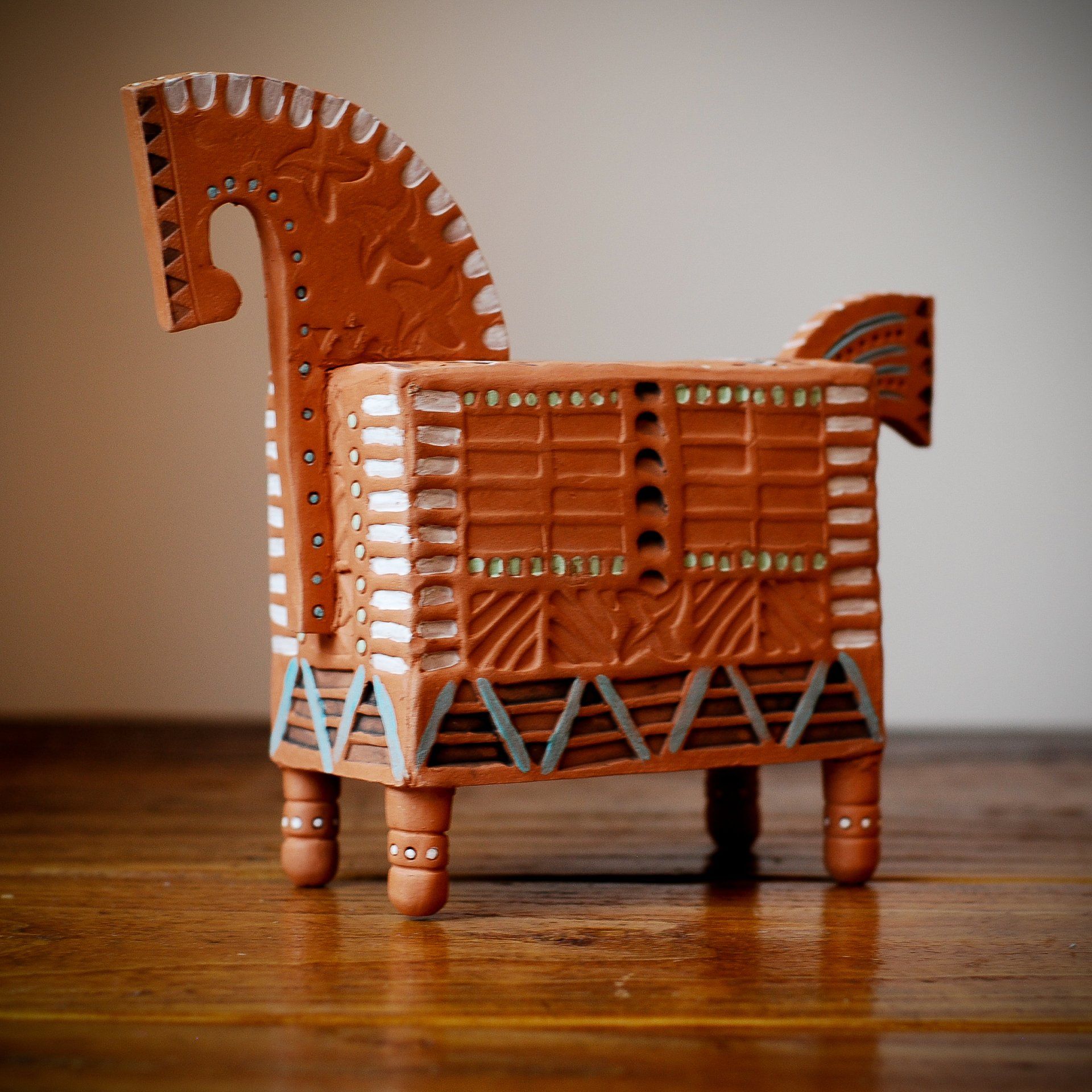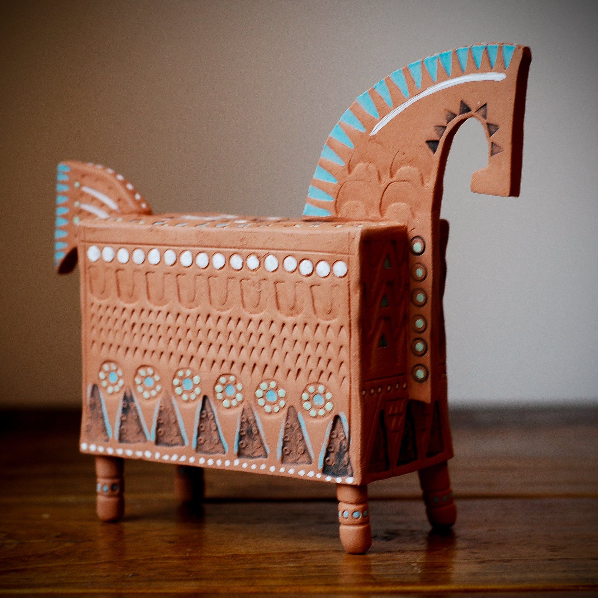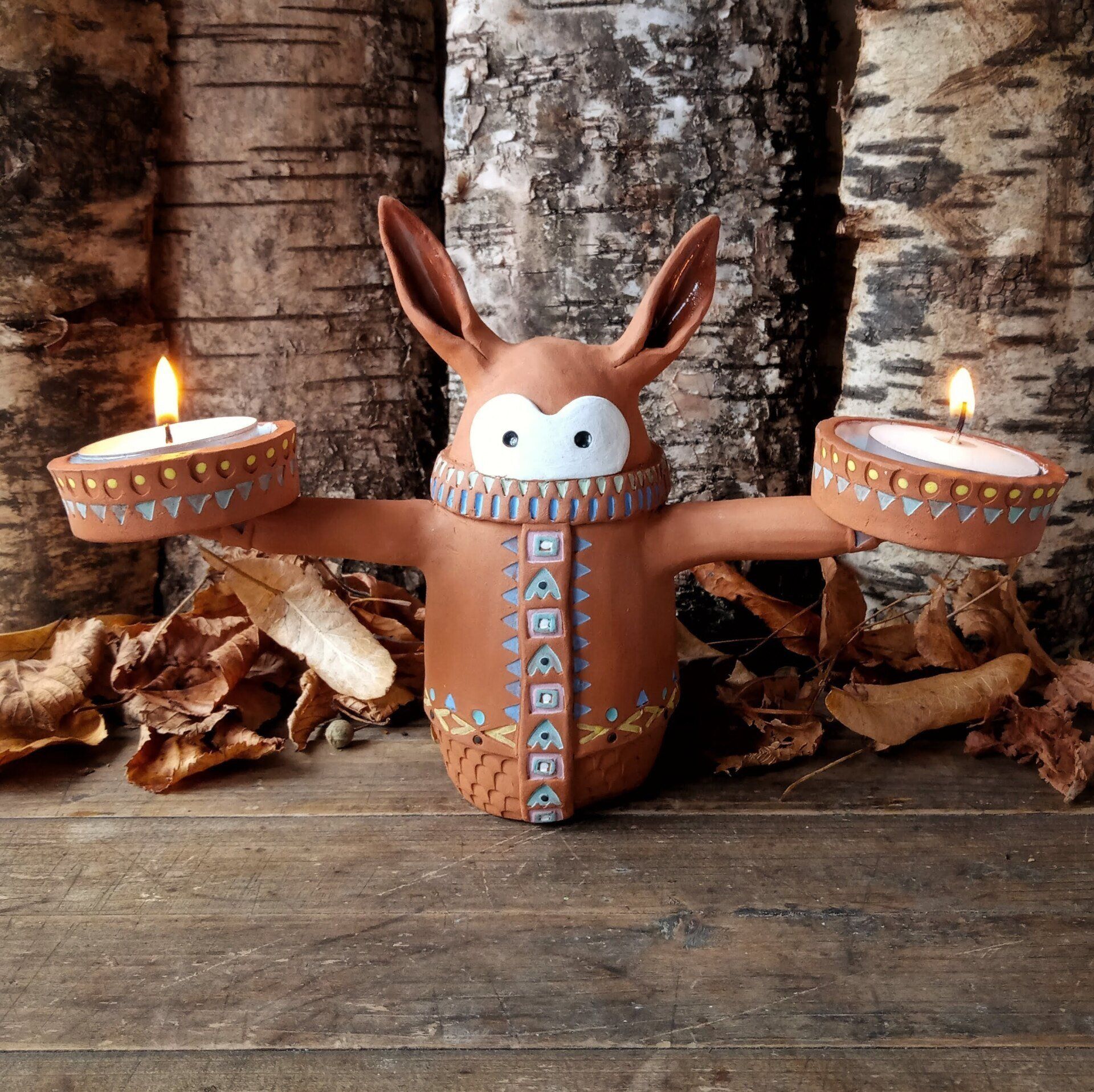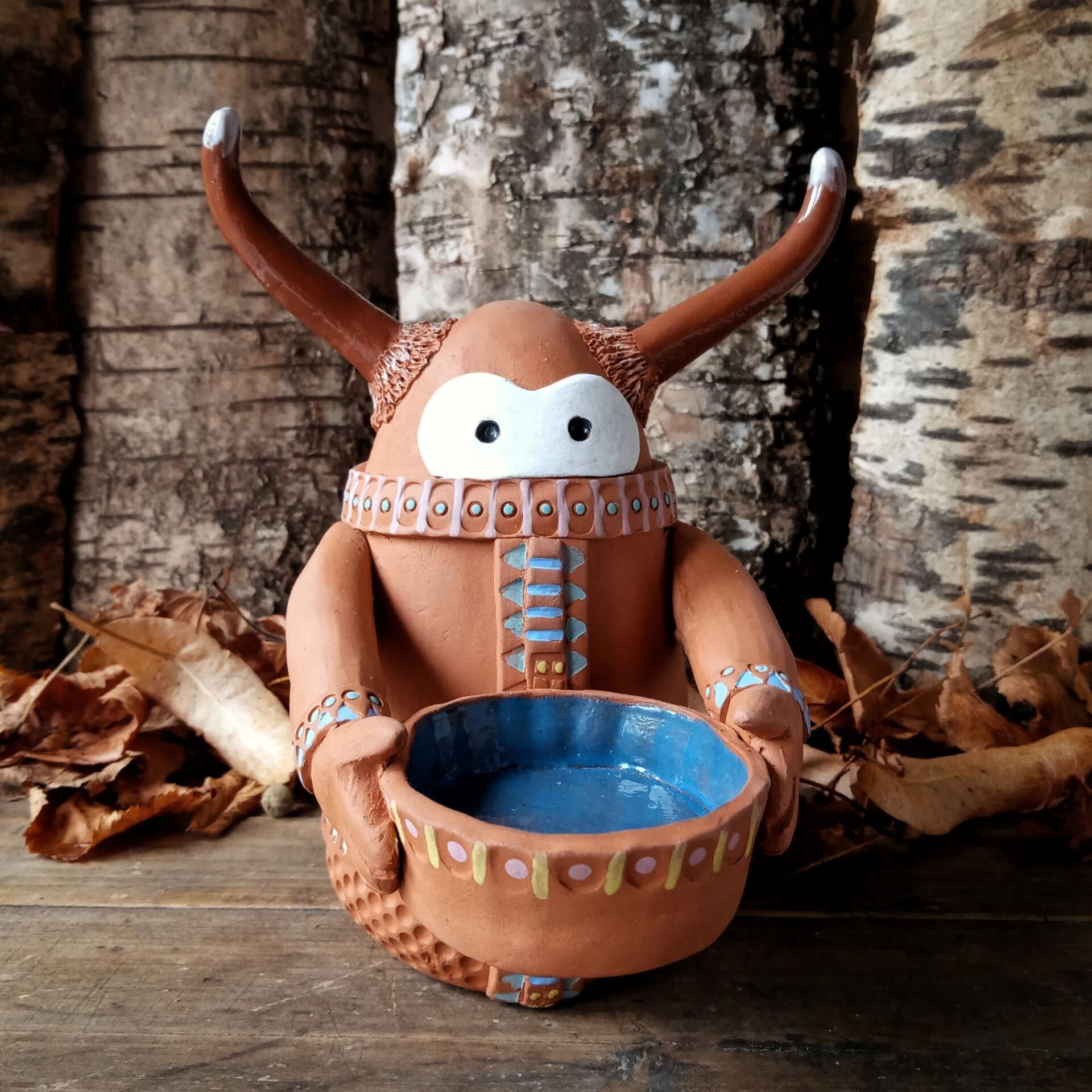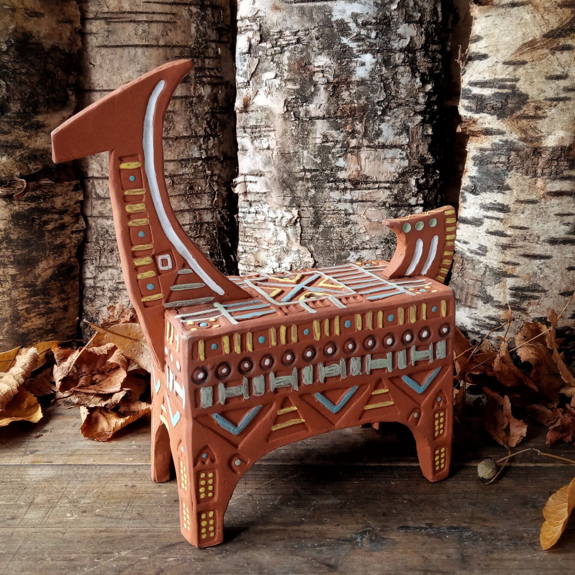 comes alive through our handcrafted terracotta spirit guardians. Each guardian is meticulously sculpted in my Nottingham garden studio, infused with intention, and adorned with the protective Algiz